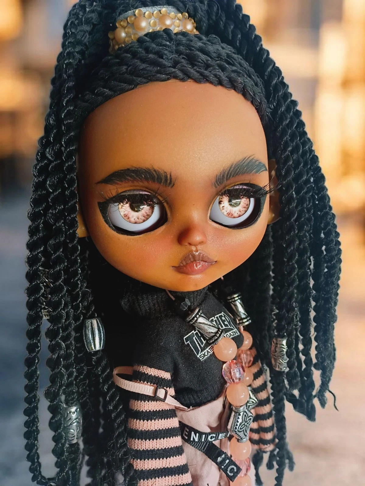 OOAK Custom Blythe Doll: Dark Skin w/Senegalese Twisted Hair