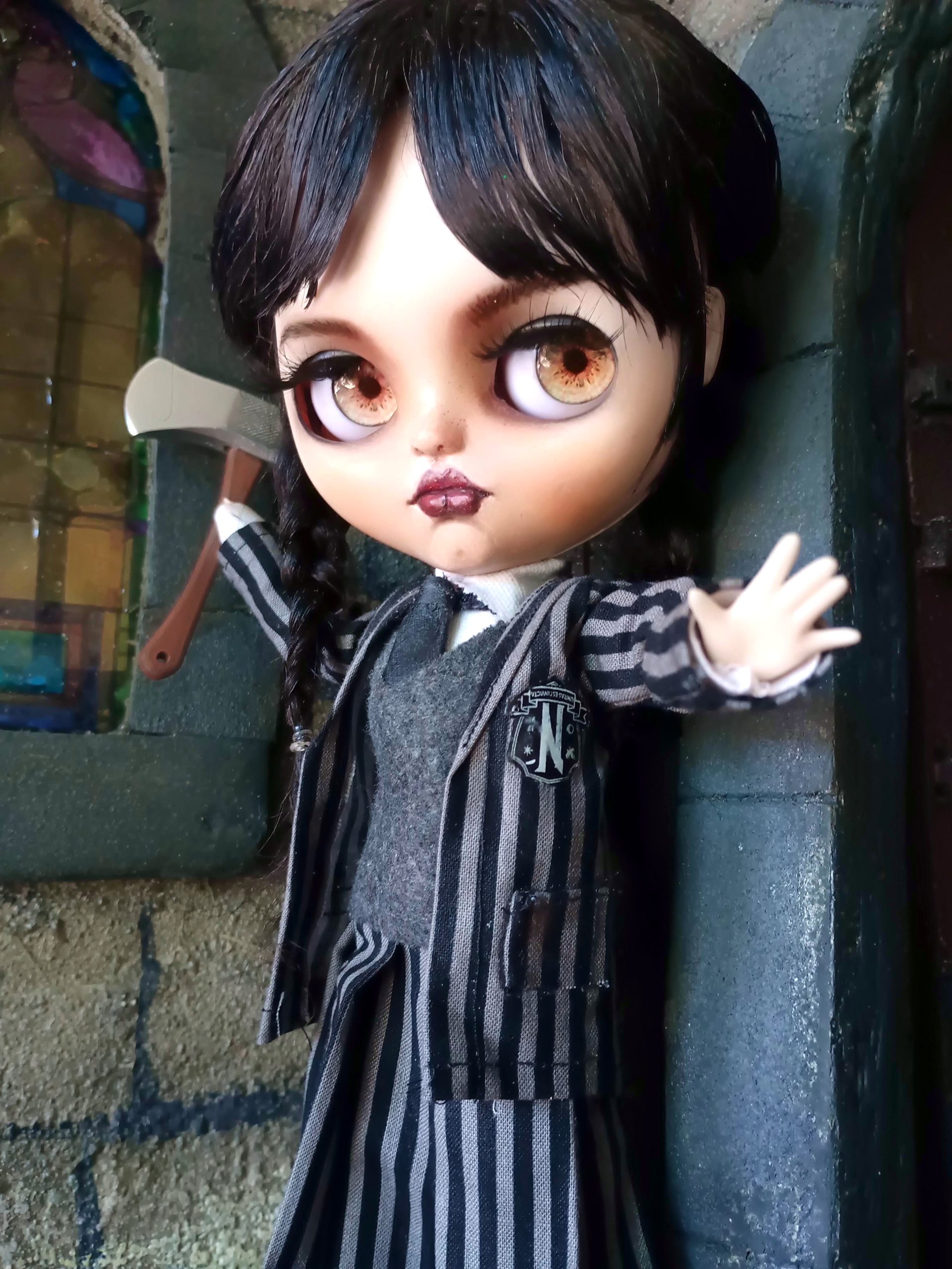 Handcrafted 12″ Blythe Doll @nebuladolls.com Wednesday Blythe Doll #available#reel♬ Solo Cello – Loppes About: This doll is uniquely designed and individually handcrafted. The doll has black mohair (not rooted) hair, a fake base and a 1/6 ball jointed body. The face plate has been modified/customized and is not factory perfect. Customization: The face plate was…